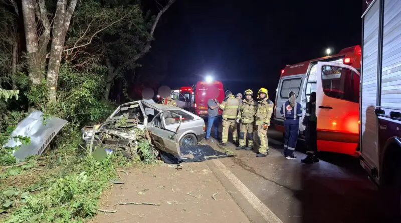 A ocorrência envolveu um caminhão guincho e um veículo Volkswagen Gol. Conforme as informações, o Gol colidiu na lateral do caminhão guincho, perdeu o controle da direção, saiu da pista e acabou colidindo contra uma árvore, ficando preso nas ferragens.
