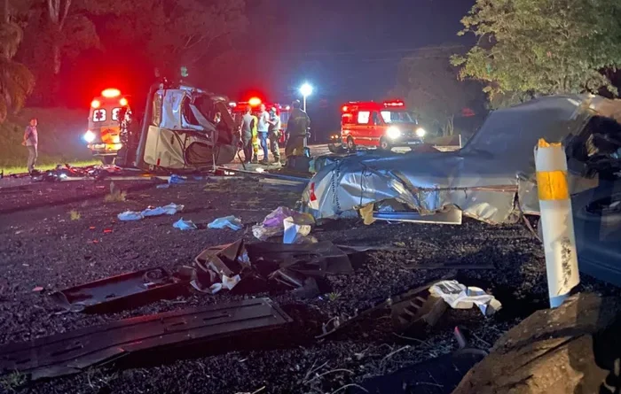 Acidente entre caminhão e micro-ônibus deixa cinco mortos e quatro feridos na BR-386, em Carazinho