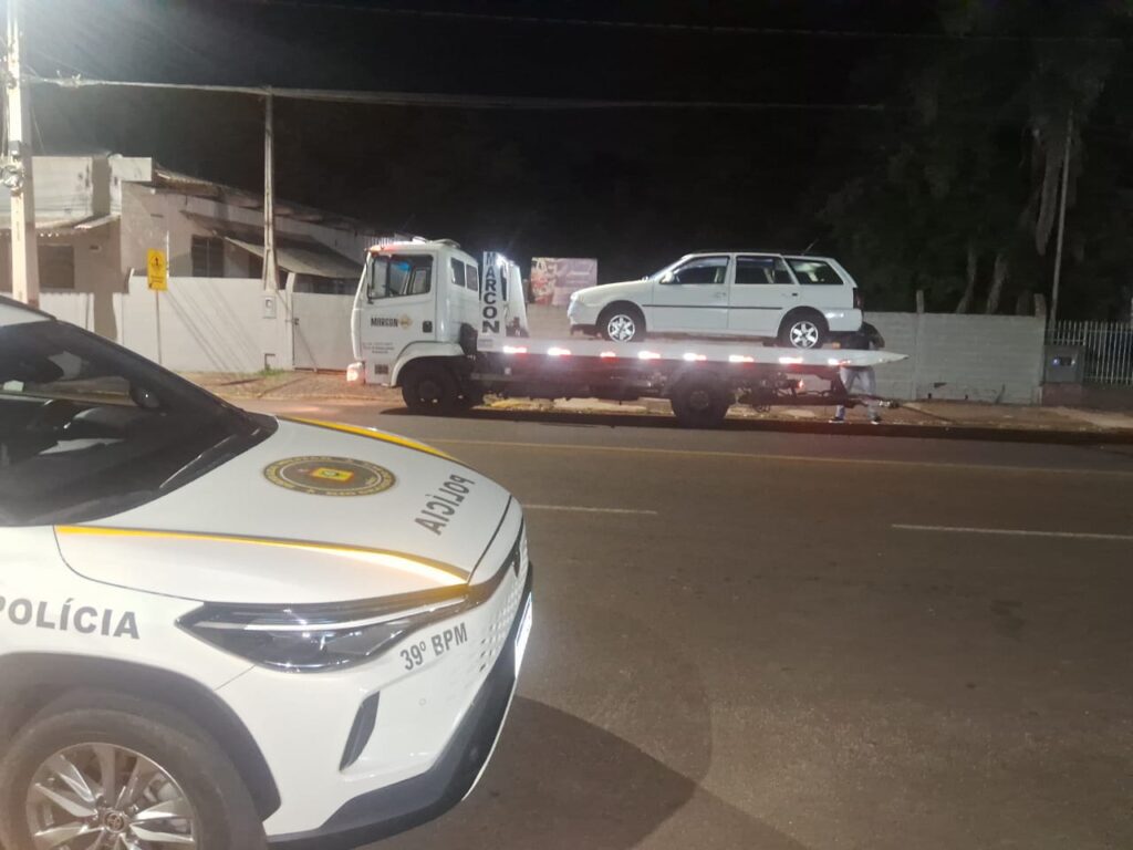 Durante consulta ao sistema, verificou-se que o referido veículo se encontra com licenciamento vencido. Diante da irregularidade, foi realizada a remoção do veículo, sendo este recolhido pelo Guincho Marcon para o depósito credenciado. Foi lavrado registro de fuga do local do acidente.