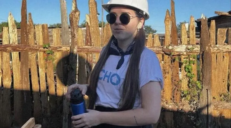 Na imagem, a arquiteta aparece nas periferias de Los Oleritos, na Argentina, durante mais uma ação voluntária pela ONG TECHO – organização latino-americana que atua na construção de moradias emergenciais e no fortalecimento comunitário, a qual faz parte há 3 anos. Neste ano, ela passou a integrar oficialmente o quadro de voluntários do setor de engenharia e arquitetura da instituição, contribuindo com projetos de diferentes tipologias construtivas e pesquisas na área de materiais sustentáveis e desempenho térmico da edificação.