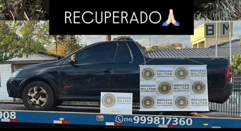 Foi recuperada na Linha Santa Fé 1, interior de Selbach, a camionete Montana de cor preta placa IMI3H62 furtada em Panambi. De acordo com as informações, um agricultor acionou a Brigada Militar informando que nas margens de um mato havia um veículo abandonado.