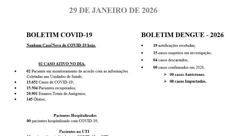 Em relação à dengue, subiu para 15 os casos suspeitos de trem contraído a doença transmitida pelo mosquito Aedes Aegypti. No entanto, nenhum caso confirmado neste ano.