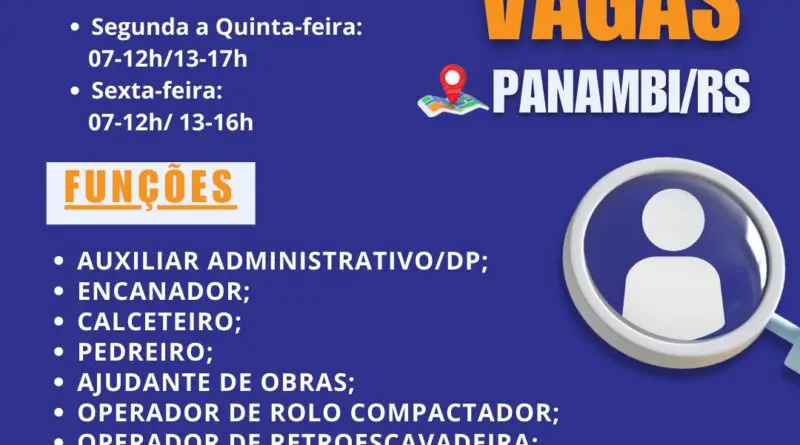 As obras de instalação da rede de esgoto em Panambi está  oportunizando a abertura de vagas de trabalho. A ENGEKO, empresa responsável pelas obras , anunciou mais de 100 vagas para contratação imediata.