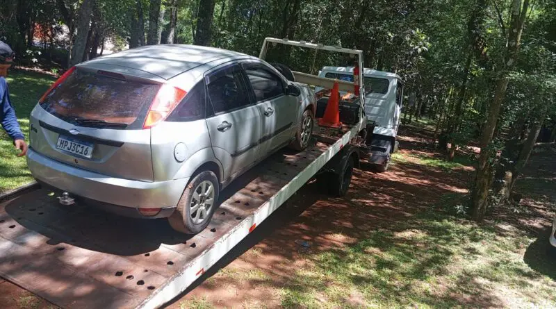 O veículo foi localizado abandonado em meio a uma vegetação na Rua Alberto Pasqualini, Bairro Erica em Panambi.