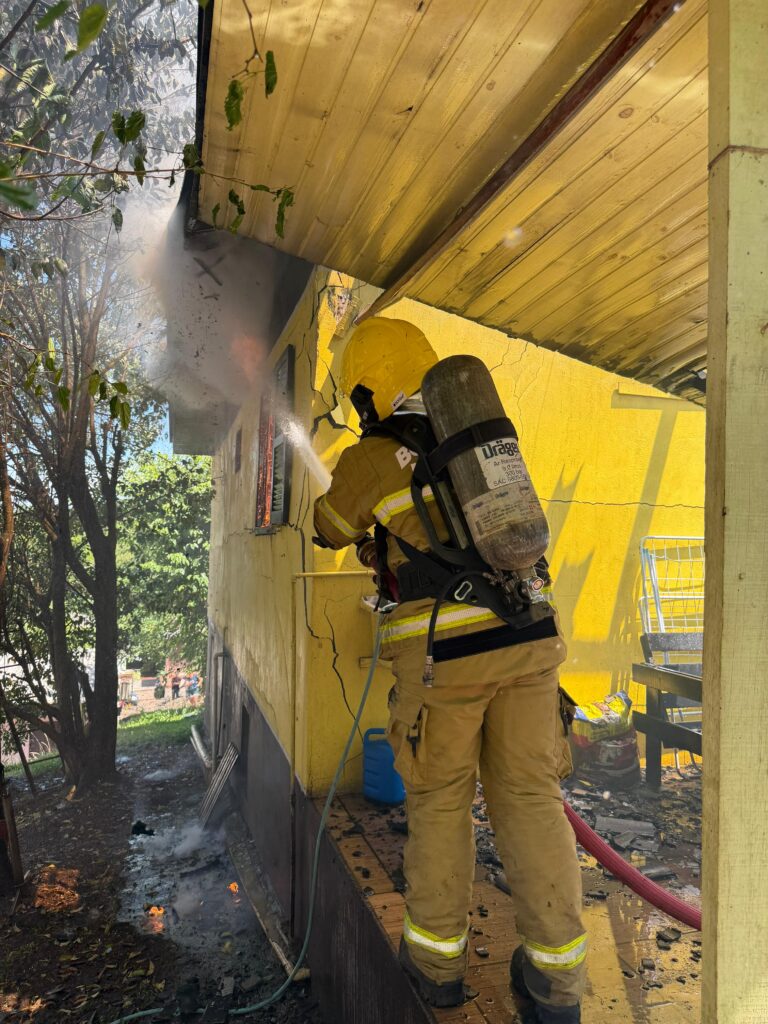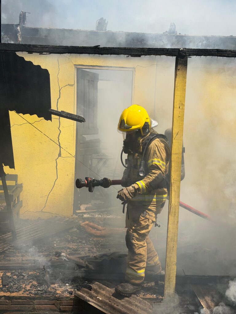 Quando a primeira equipe de Bombeiros chegou, entrou em combate ao incêndio enquanto uma segunda equipe buscava extinguir as labaredas e, num segundo momento, realizando o rescaldo. A residência, de construção mista, ficou toda comprometida pelo incêndio. A família composta por quatro pessoas um casal e duas crianças que mora de aluguel, perdeu tudo no incêndio, ficando apenas com a roupa do corpo, e vai precisar de ajuda para recomeçar. No momento do sinistro não havia ninguém, no interior da residência.