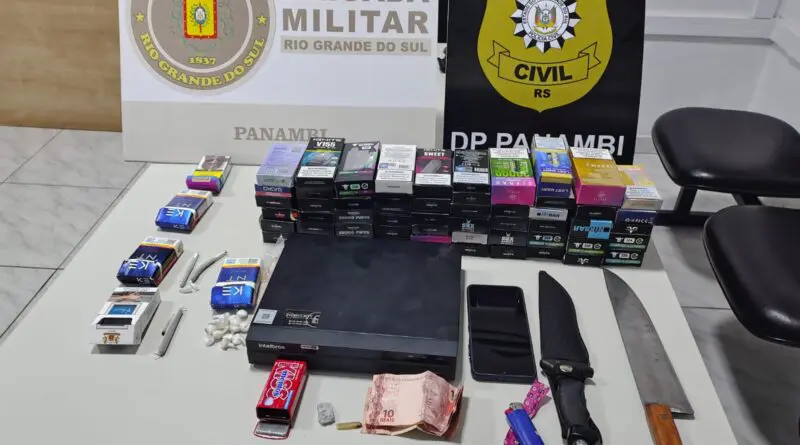 Na operação,ocorreu a apreensão de cerca de 50 cigarros eletrônicos, pequena quantidade de maconha e crack, duas facas e outros objetos.