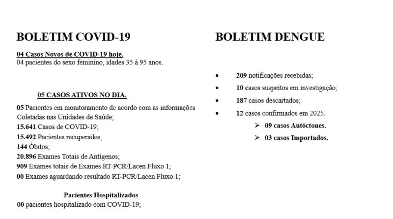 Em relação a dengue, dois novos casos suspeitos foram registrados ontem.