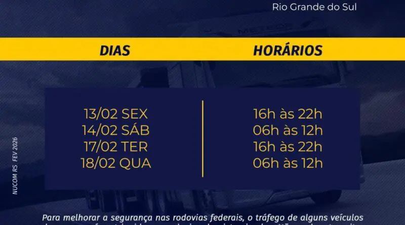 A intensificação da fiscalização busca reduzir os sinistros de trânsito causados pelo consumo de álcool, reforçando que a melhor decisão é nunca dirigir após ingerir bebida alcoólica. Além do reforço na fiscalização, a PRF adotará restrição de tráfego para determinados veículos de carga, válida exclusivamente para rodovias federais de pista simples. Em trechos duplicados, o trânsito de veículos longos permanece permitido.