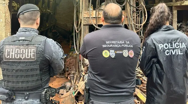 A Secretaria da Segurança Pública realizou a 172ª edição da Operação Desmanche, na terça-feira (22/7), na cidade de Santo Augusto. A ação, que mobilizou 46 servidores das forças de segurança do Estado, fiscalizou quatro estabelecimentos e resultou na apreensão de aproximadamente 120 toneladas de sucata. Além disso, as quatro empresas foram autuadas pelo DetranRS e vão sofrer medidas administrativas de recolhimentos das peças e carcaças de automóveis em situação de desmanche. Também foram lavrados quatro termos circunstanciados por falta de licença ambiental e três notificações do Corpo de Bombeiros Militar (CBM).