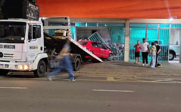 Veículo atinge porta de estabelecimento comercial em Panambi