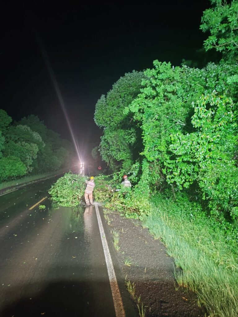 Os Bombeiros foram acionados e efetuaram a retirada das árvores que não prejudicaram o trânsito.
